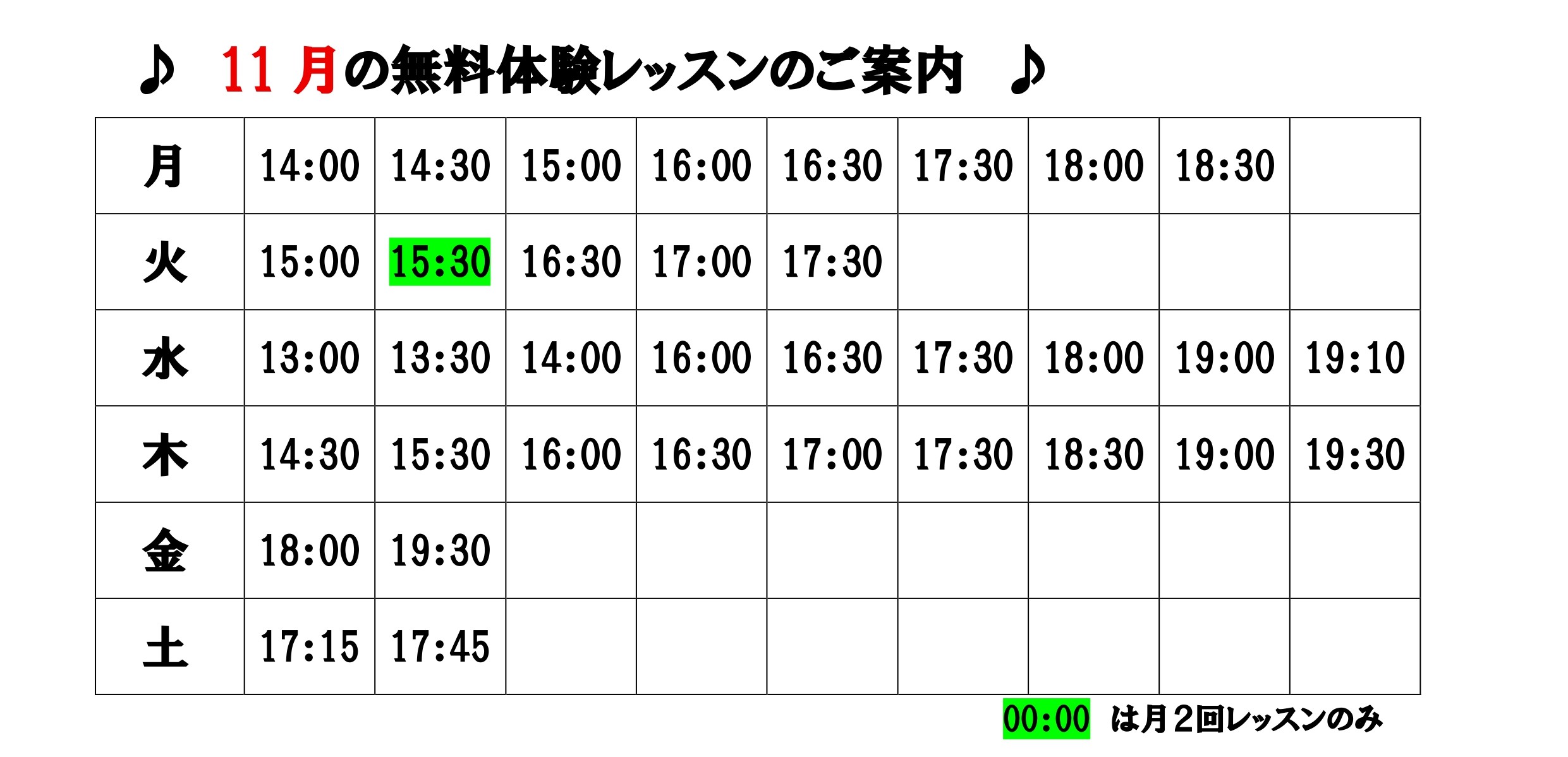 曜日によって講師が変わりますので、お通いやすい曜日、時間での体験をおすすめしております。
