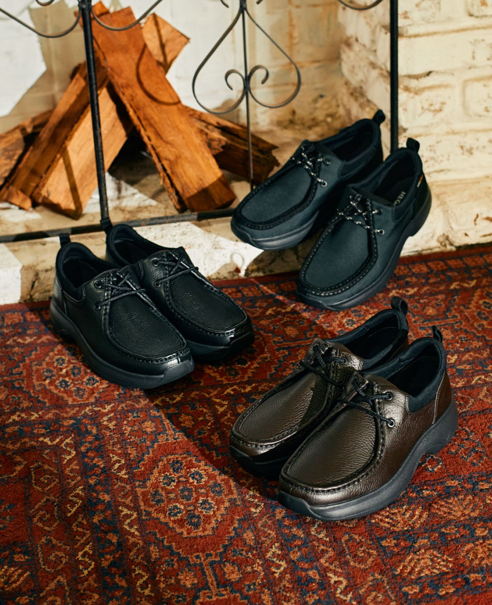足全体を優しく包み込むような快適な履き心地の2アイレットのモカシン。オーセンティックなデザインに、ソールに厚みを待たせ現代的なエッセンスを加えました。一針一針手縫いされた立体的なモカシンステッチは、職人の丁寧な仕事ぶりと温もりが伝わります。