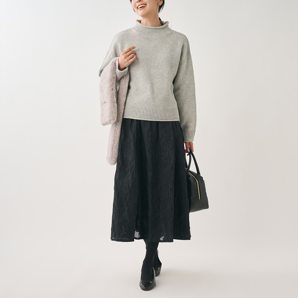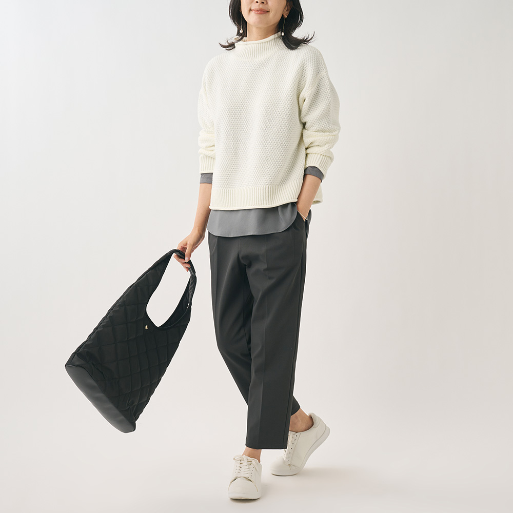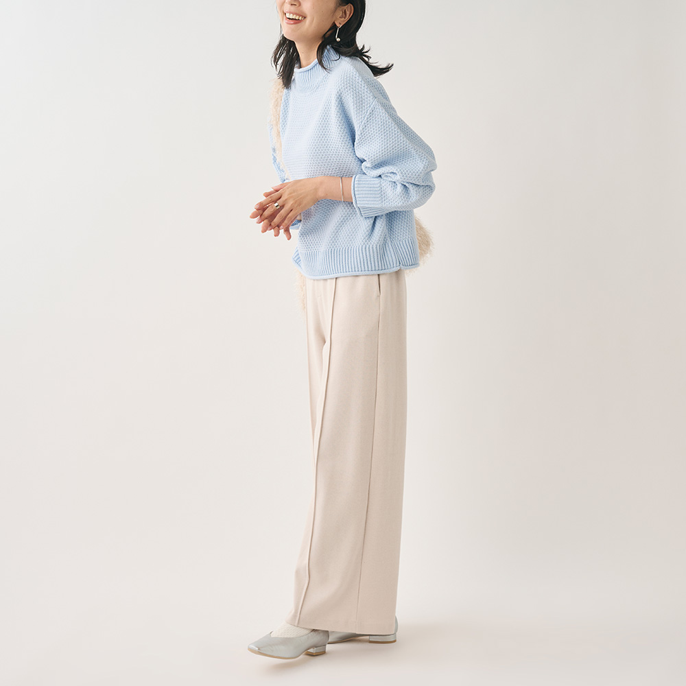 表面感のある鹿の子編みでコーデにニュアンスをプラスできます♪