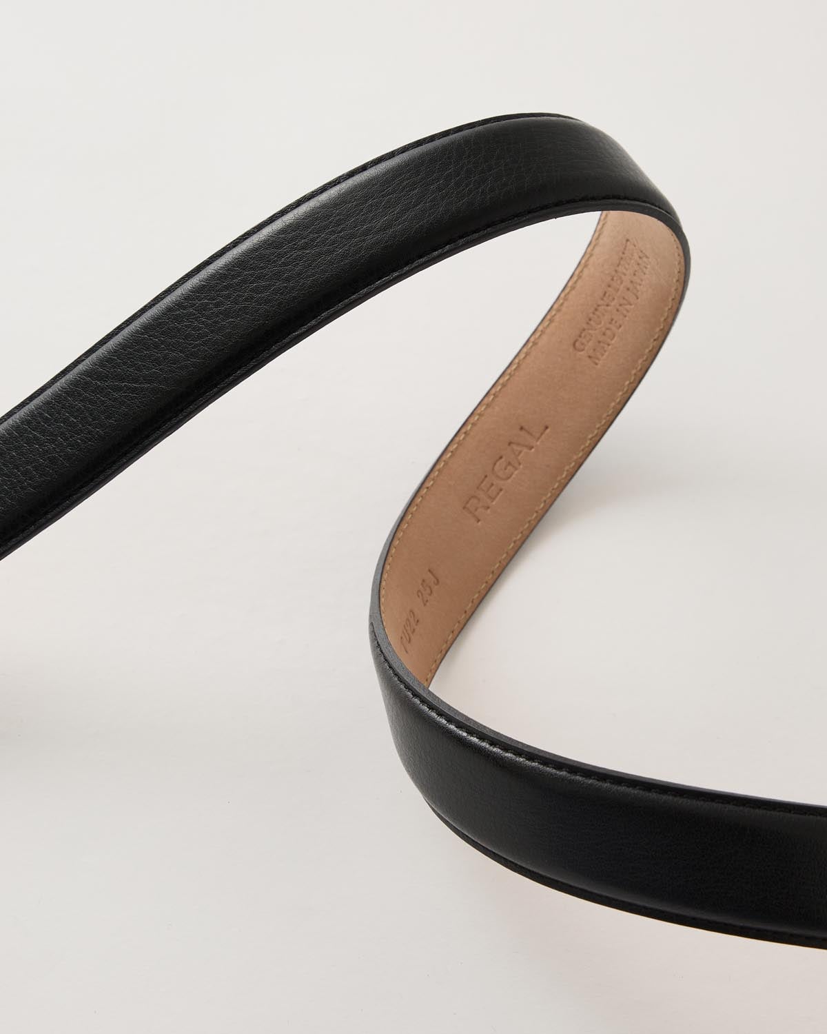 一見すると、シンプルなレザーベルト。実はその裏側にはスマートな「スライドバックル」が隠されています。一般的なベルトのように2〜3cm間隔の位置で合わせるのではなく、ピンホール(ベルト穴)を完全になくしたことで自分にぴったりのサイズにアジャストできます。機能を追求した結果、このミニマルなデザインに辿り着きました。
