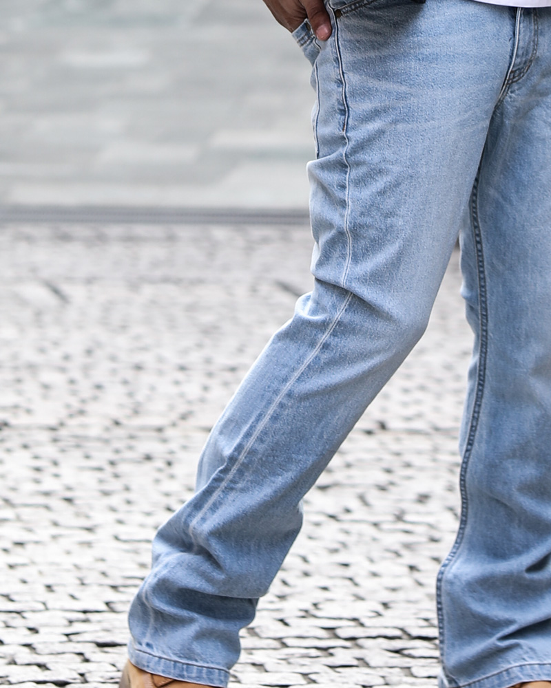 膝周りをシャープに絞り、膝下から裾にかけて自然に広がるシルエットが、脚を長くスタイリッシュに見せる。