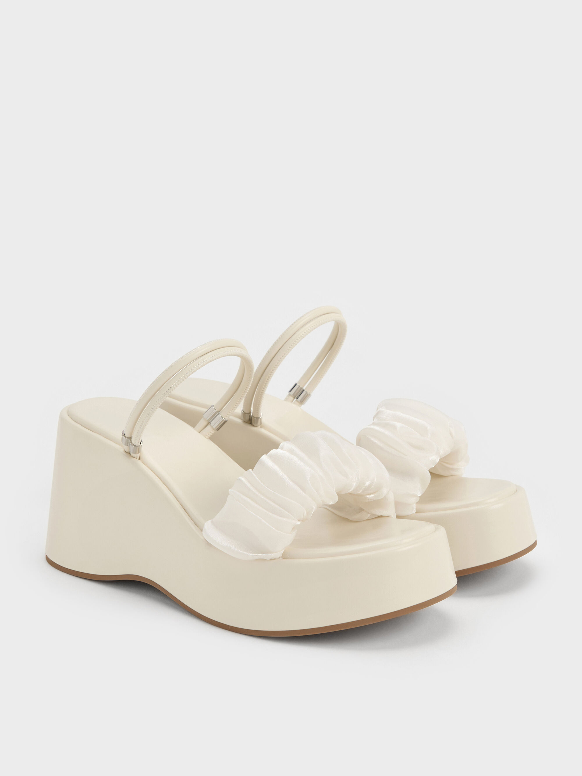 スタイルアップの厚底とアッパー部分にあるギャザーがポイント。