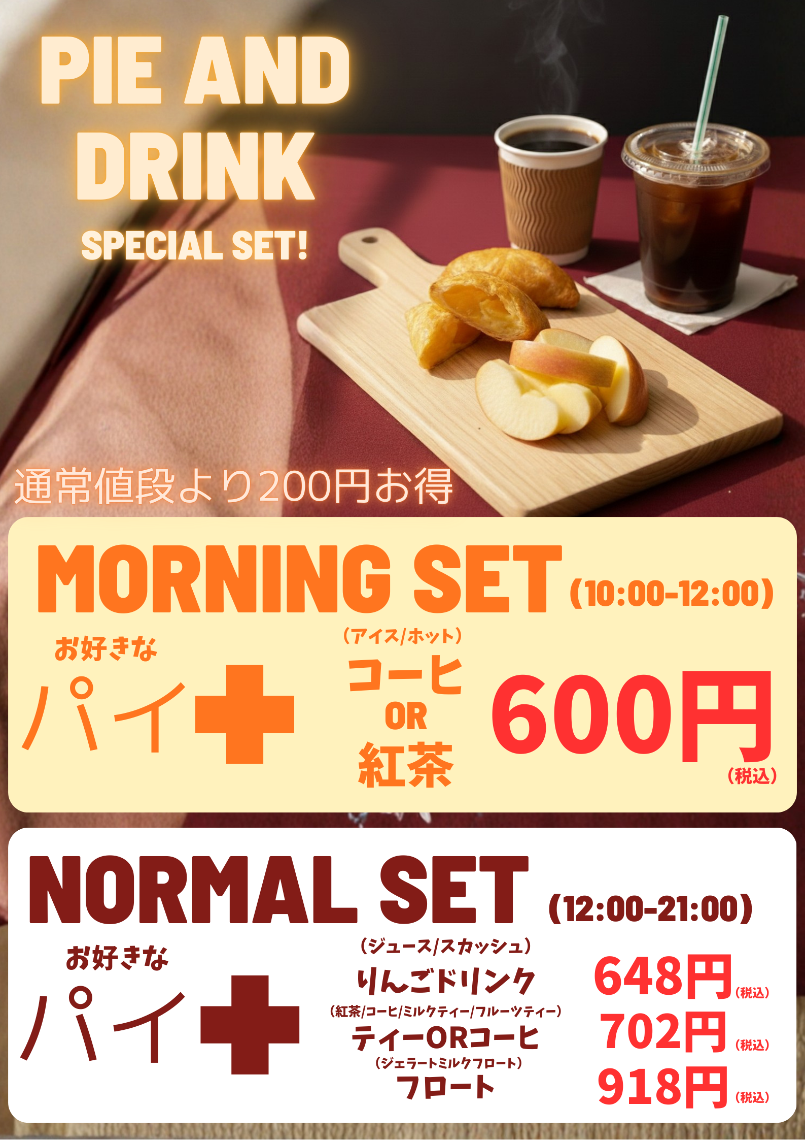 お得なパイ・ドリンクセットはいかがですか?