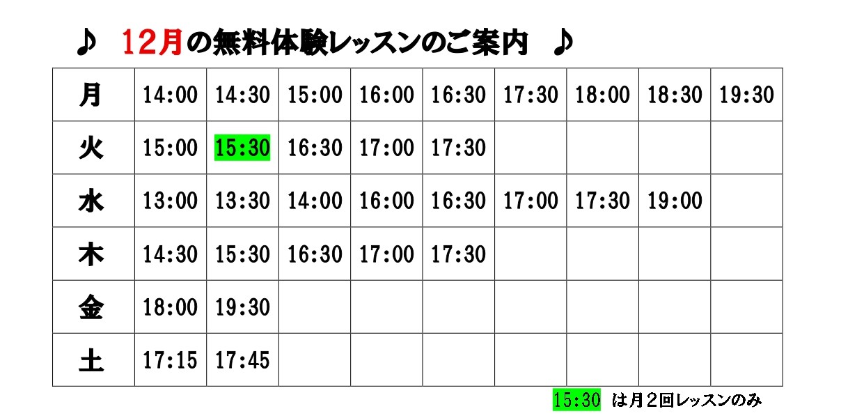 曜日によって講師が変わりますので、お通いやすい曜日、時間での体験をおすすめしております。