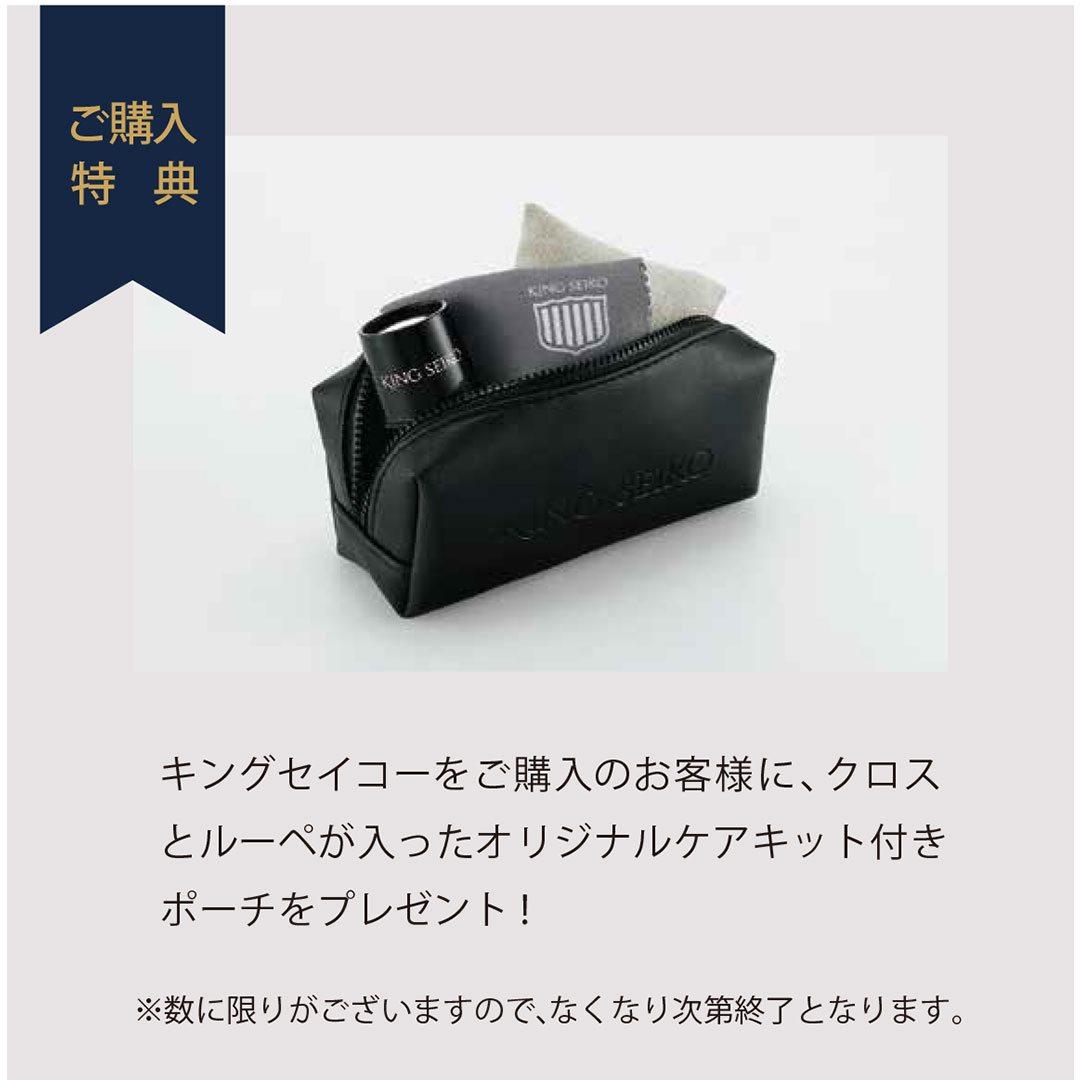 ・キングセイコーをご購入の方に、クロスとルーペが入ったオリジナルケアキット付きポーチをプレゼント。