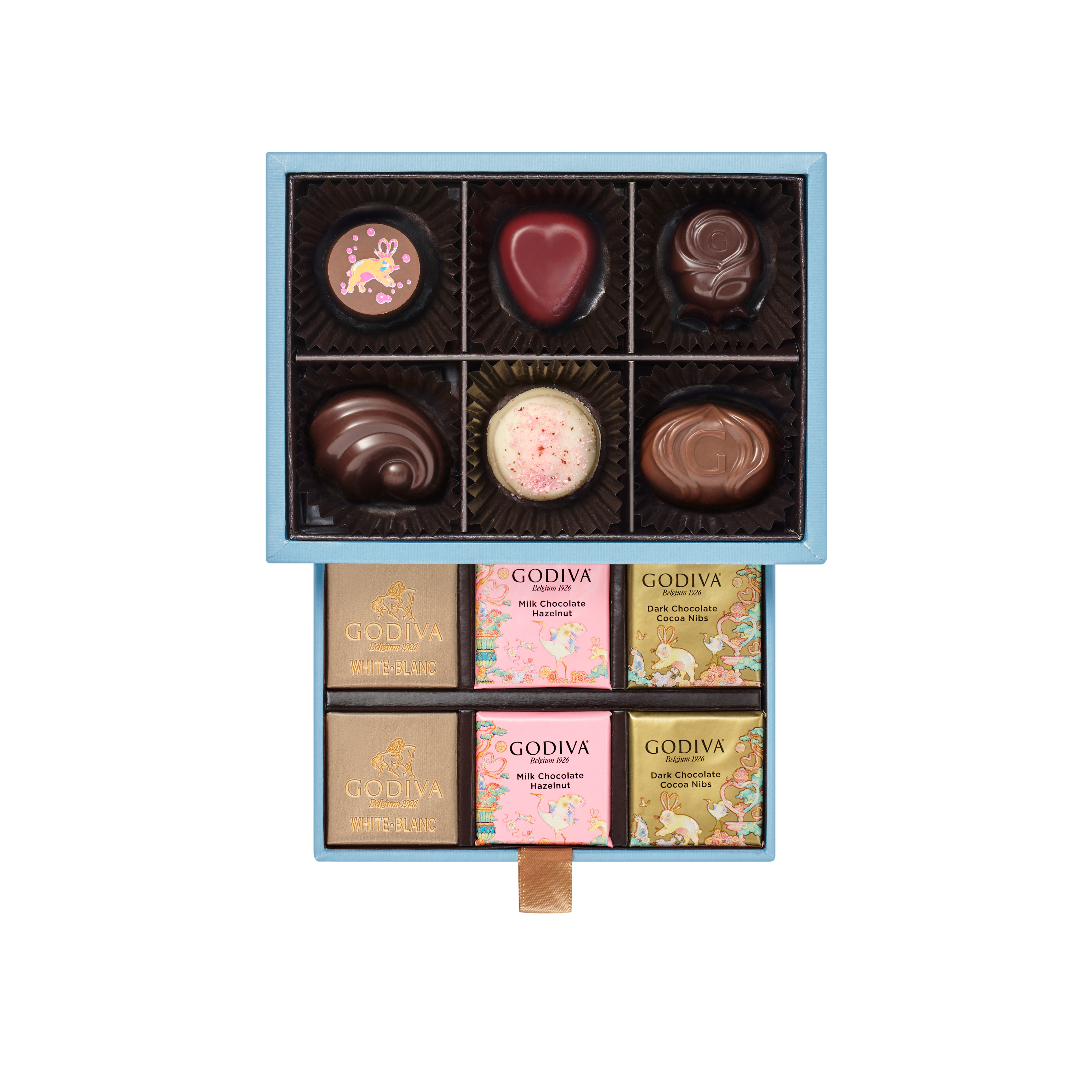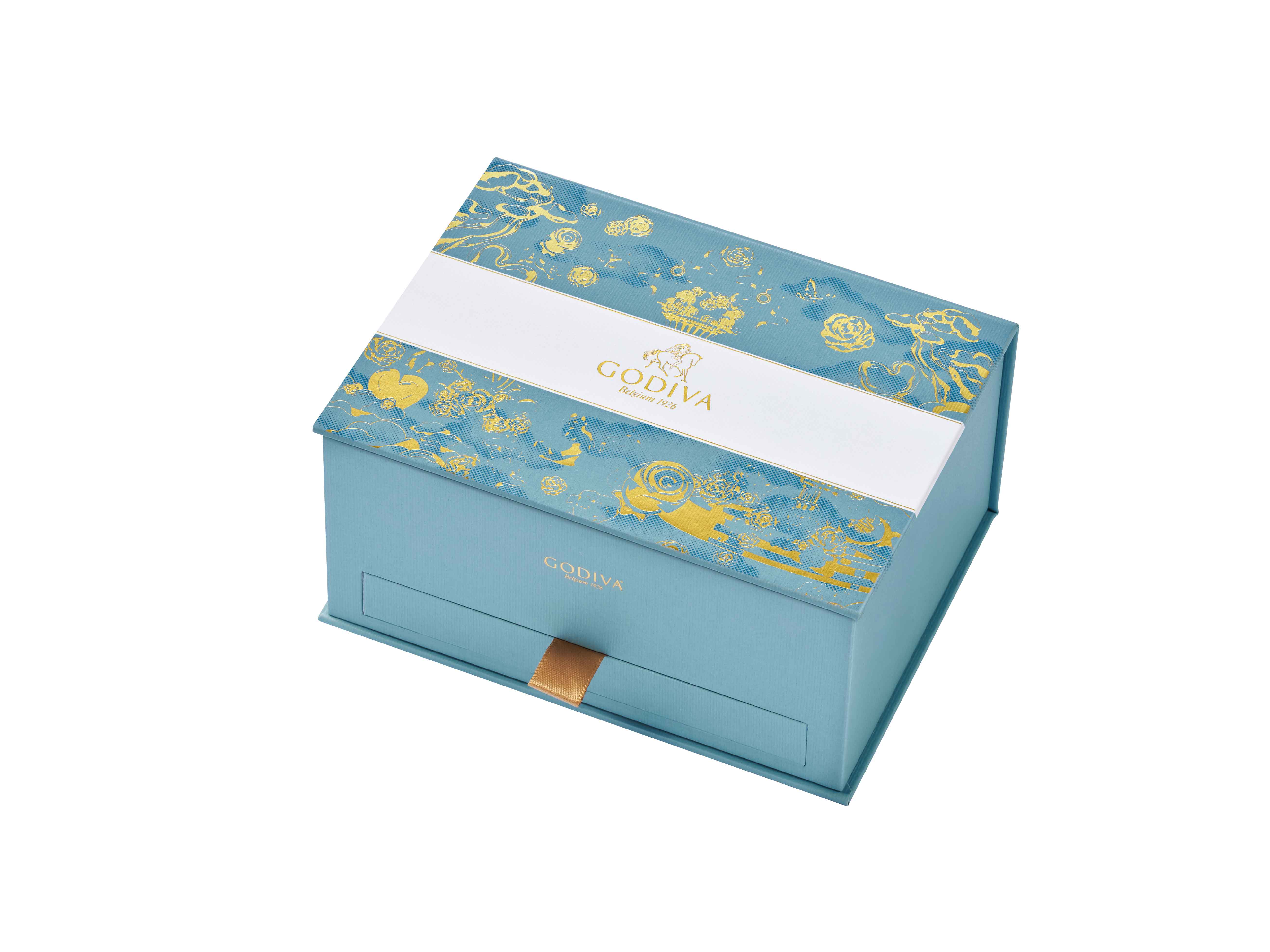 夢のように広がるローズガーデンをイメージした、この時期限定「チョコレートローズ コレクション」。 ゴディバの限定粒とカレを楽しみたい方へ。甘酸っぱいローズヒップガナッシュをほろ苦いダークチョコレートで包んだローズ形のチョコレートと酸味のあるラズベリーガナッシュが入ったハート形のチョコレートんなどさまざまなショコラを詰め合わせました。