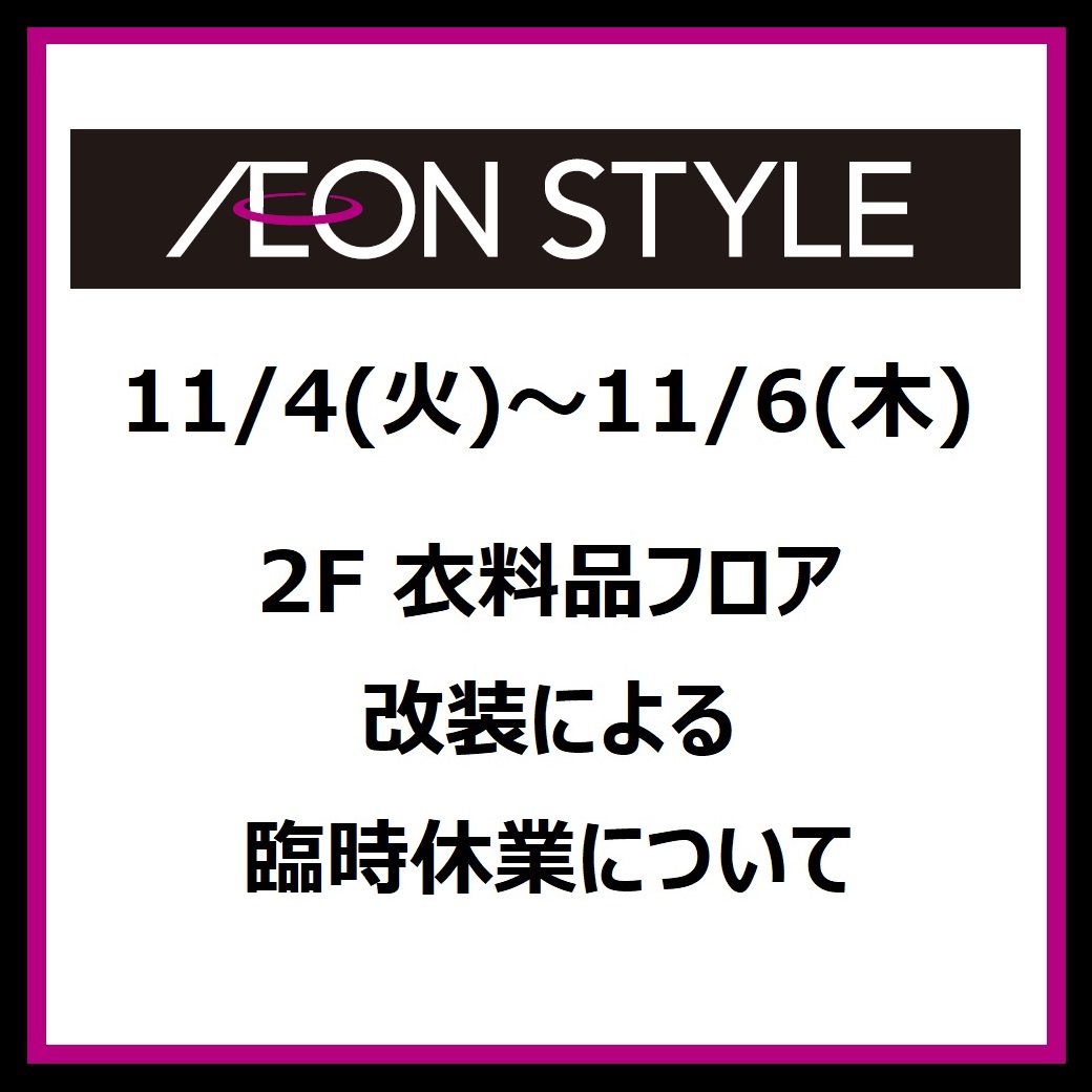 イオンスタイルワンダーシティ2階衣料品のリニューアルオープンにあたり、下記の期間、臨時休業いたします。