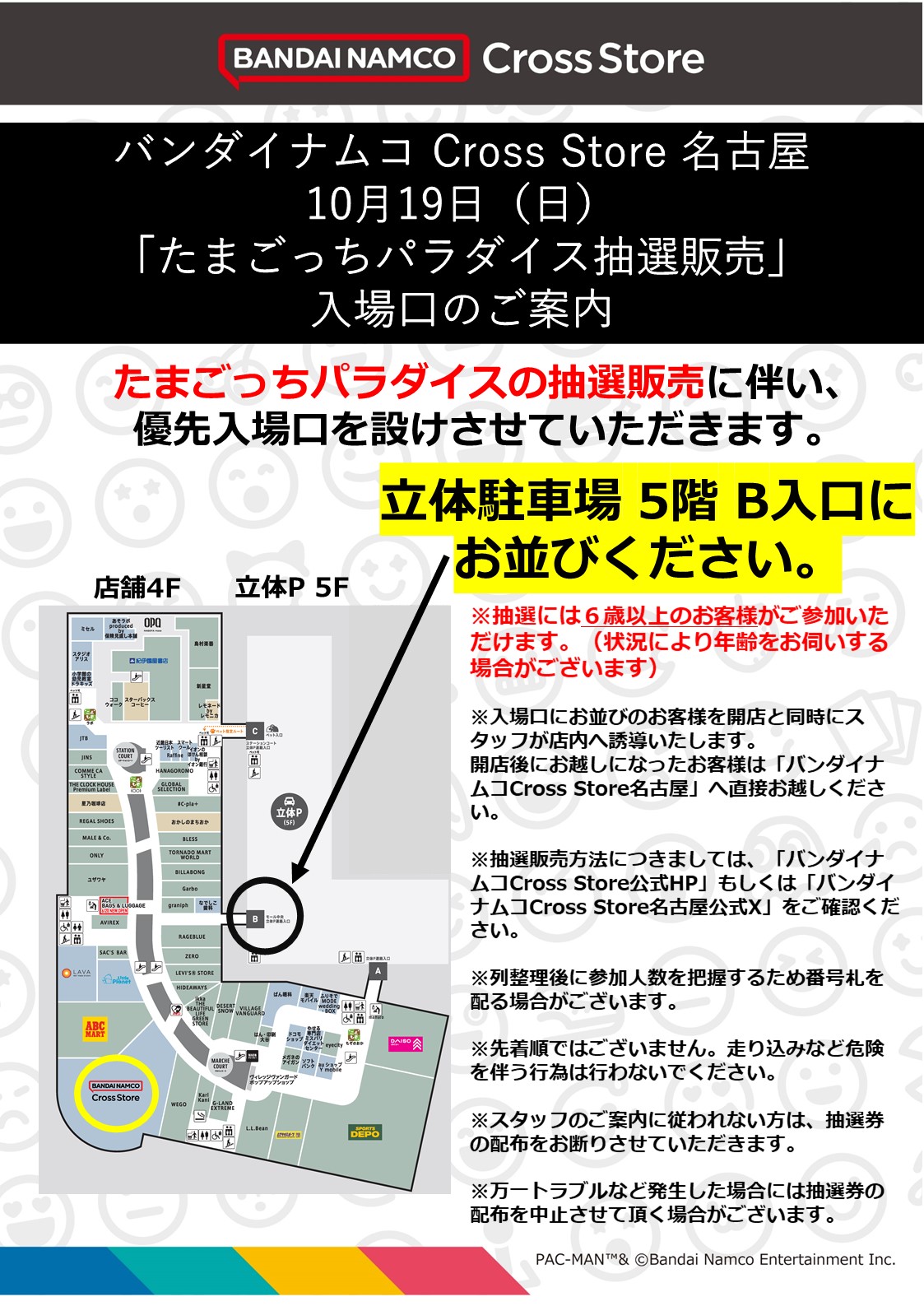 開店後にお越しになったお客様は「バンダイナムコCross Store名古屋」へ直接お越しください。