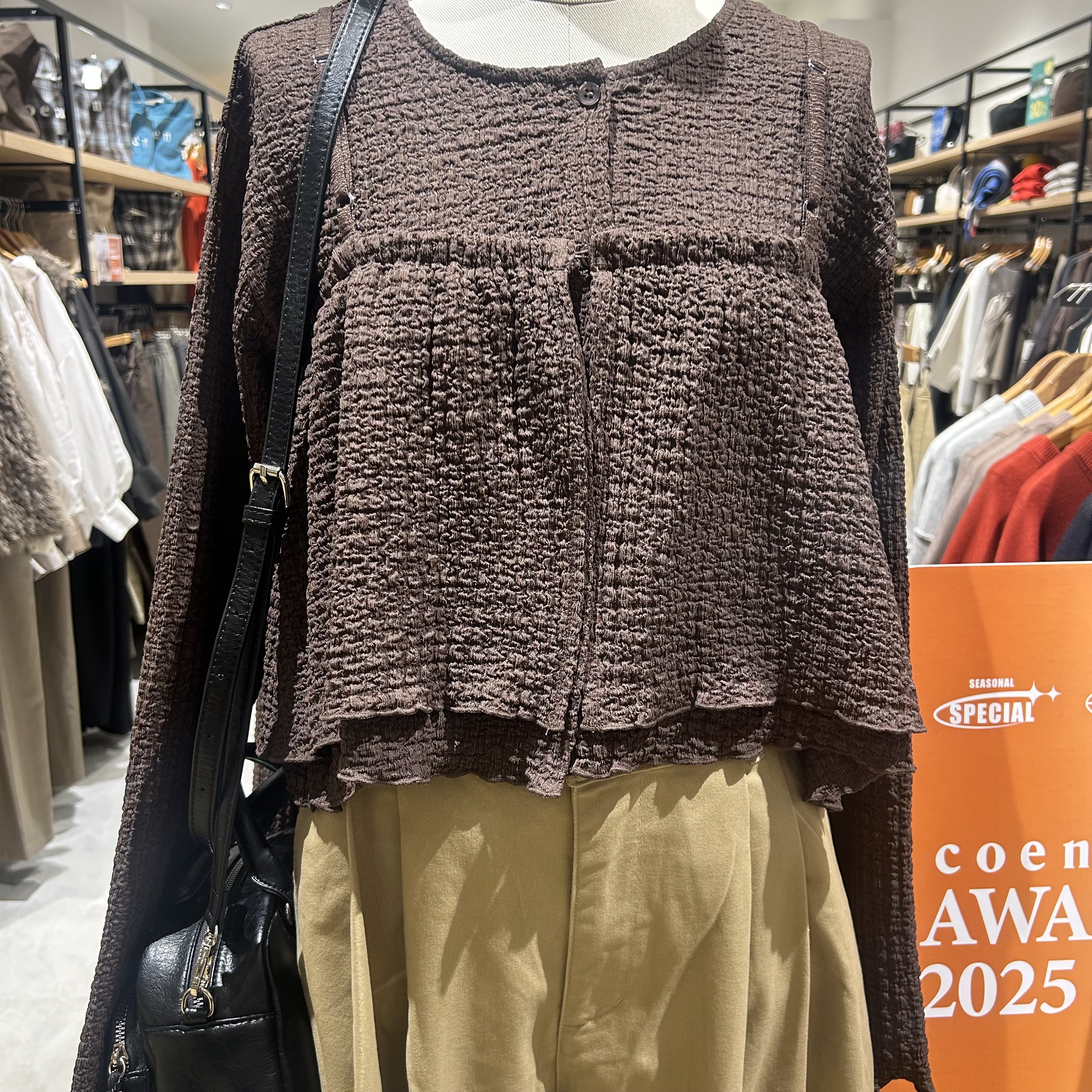 ポコポコとした素材感が可愛らしい、キャミソールタイプのビスチェとカーディガンのマルチWAYセットです!
