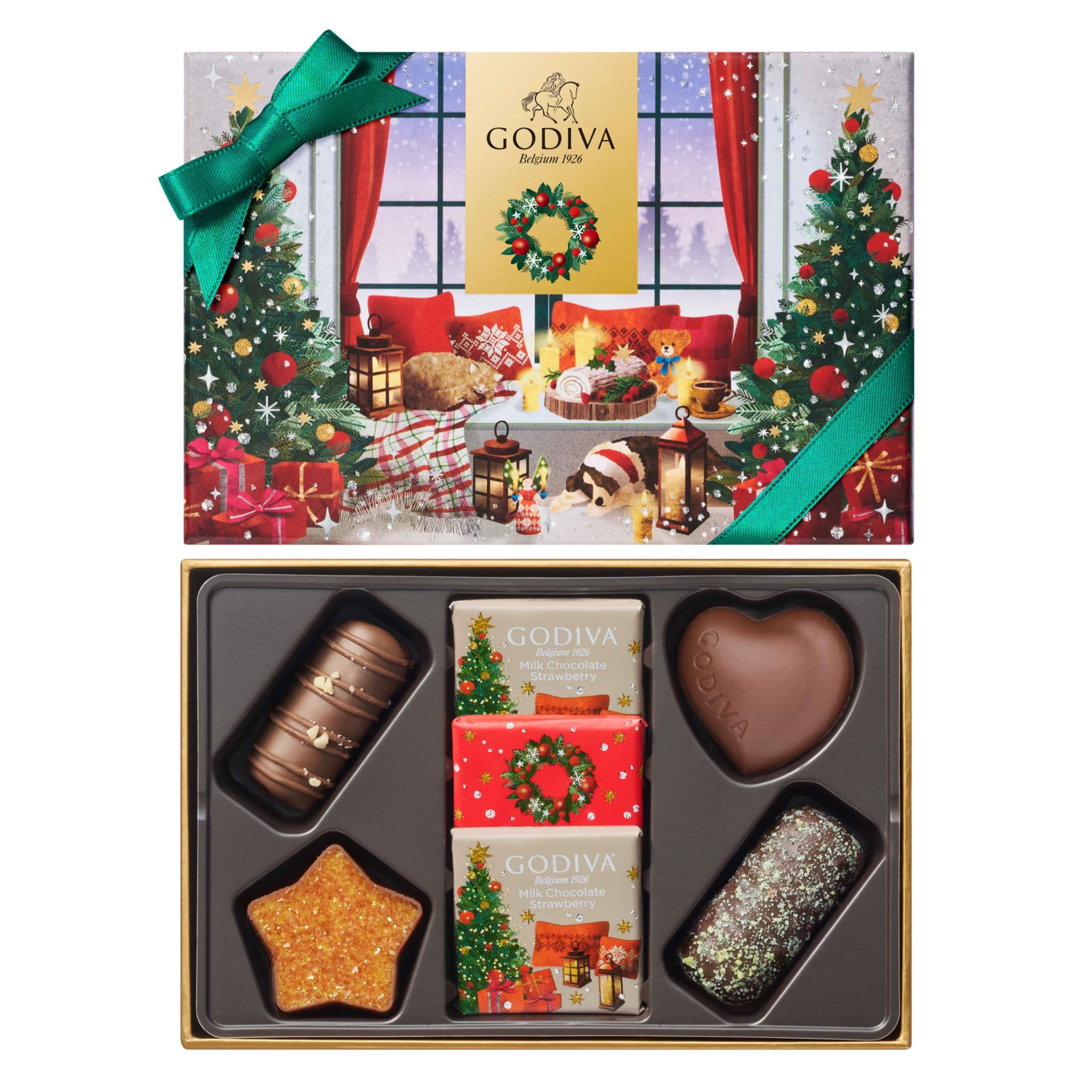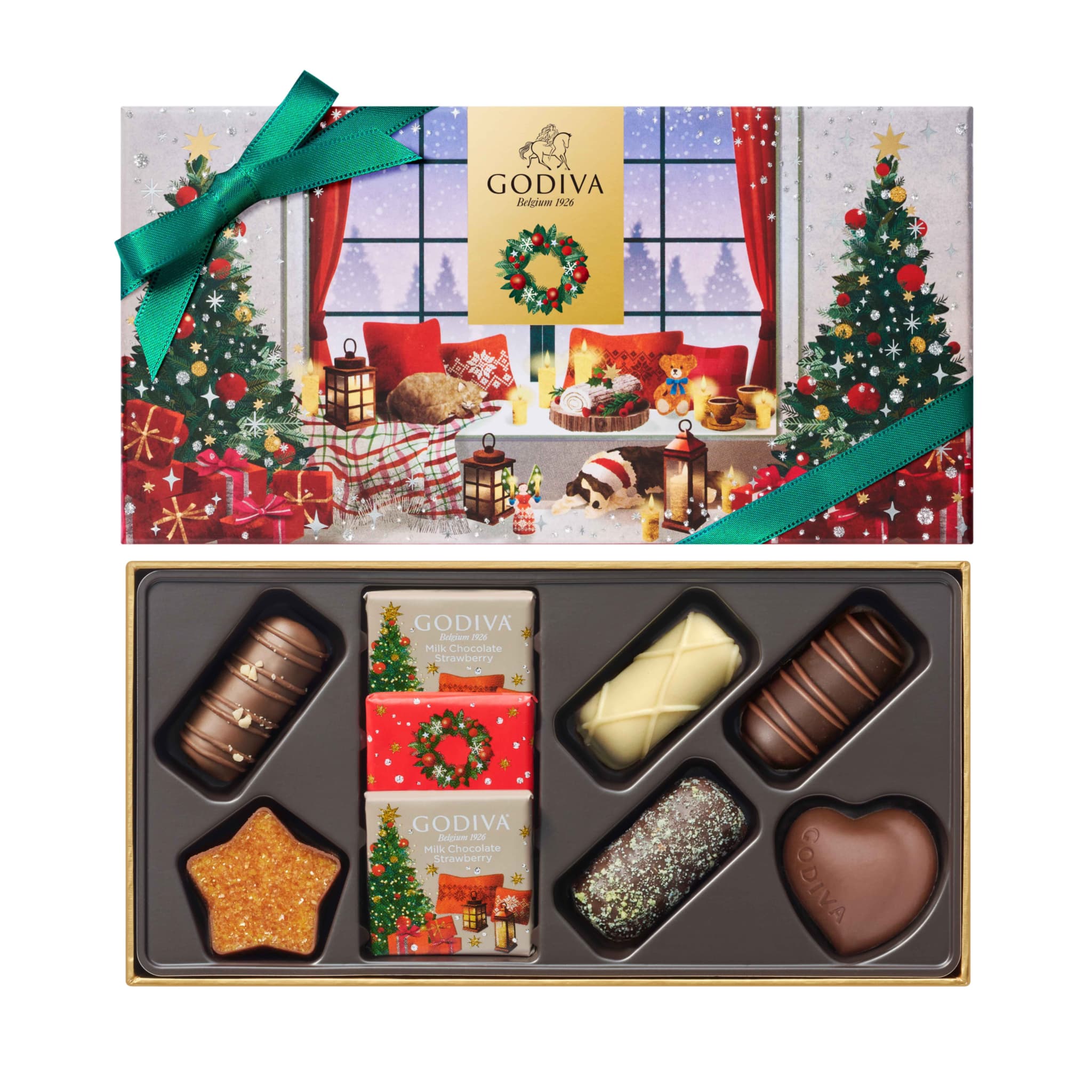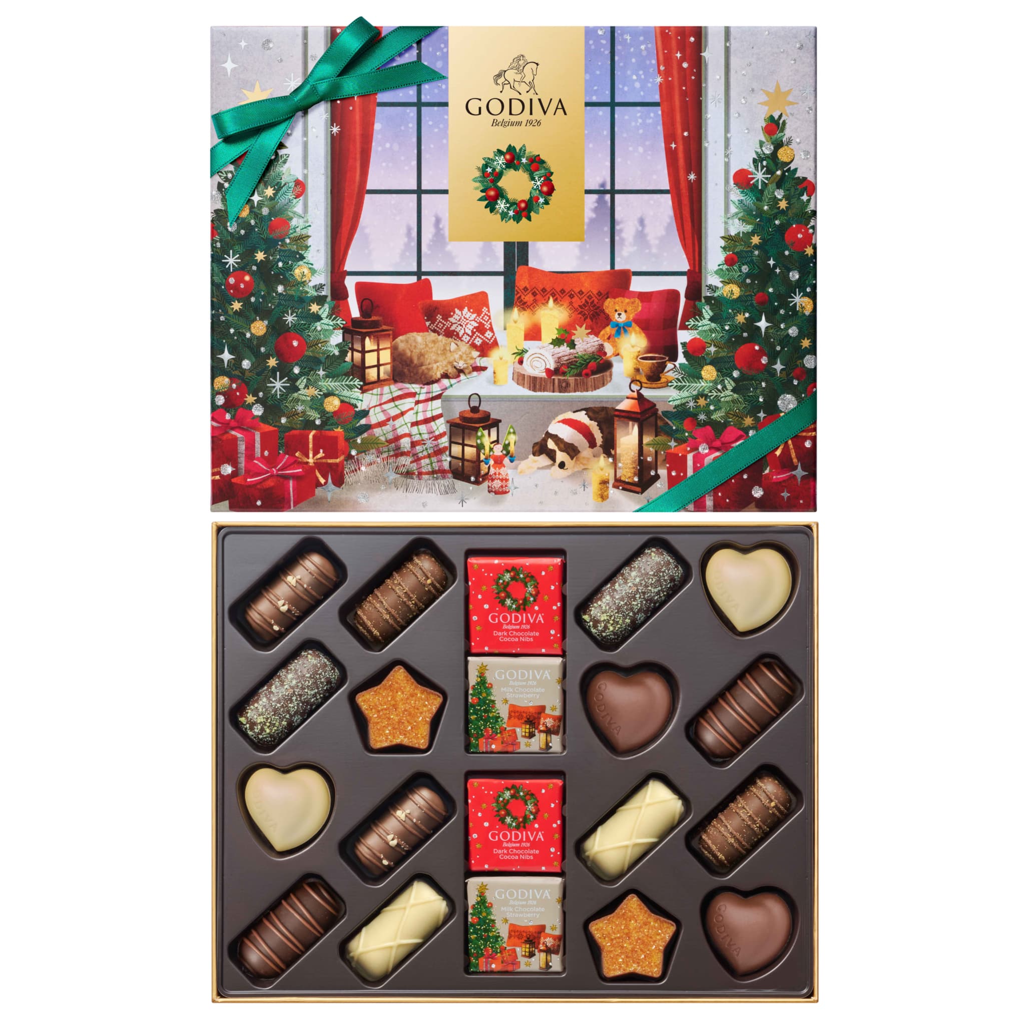 “ブッシュ ド ノエル”はヨーロッパの伝統的なクリスマスケーキ。ゴディバの2025年ホリデーコレクションは、シェフによって生み出される、美しく洗練されたさまざまなブッシュ ド ノエルをチョコレートで表現しました。 雪が舞い降る聖夜、クリスマスを祝う温かなひととき。ブッシュ ド ノエルを囲んで寛ぐペットたち、オーナメントで飾らせたクリスマスツリーや美しいラッピングのギフトボックス。そんな幸せに包まれたファミリークリスマスをイメージしたパッケージに、ブッシュ ド ノエルを表現した限定チョコレート、カレなどを詰め合わせました。