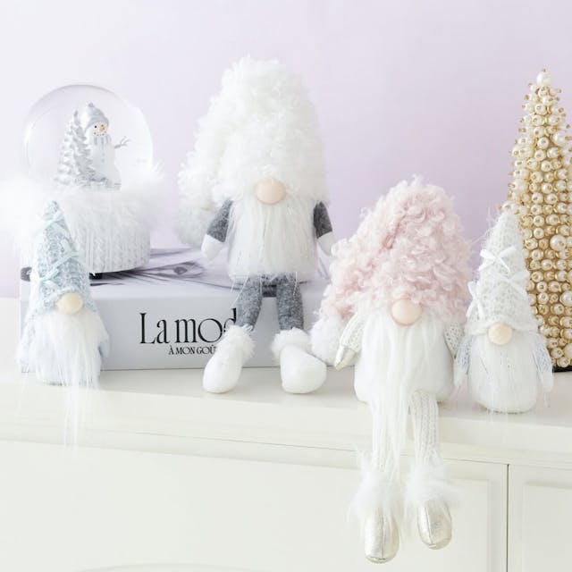 キラキラしたものや、ふわふわ素材、リボン付きなど、さまざまなデザインの帽子をかぶったノルディックサンタ♪