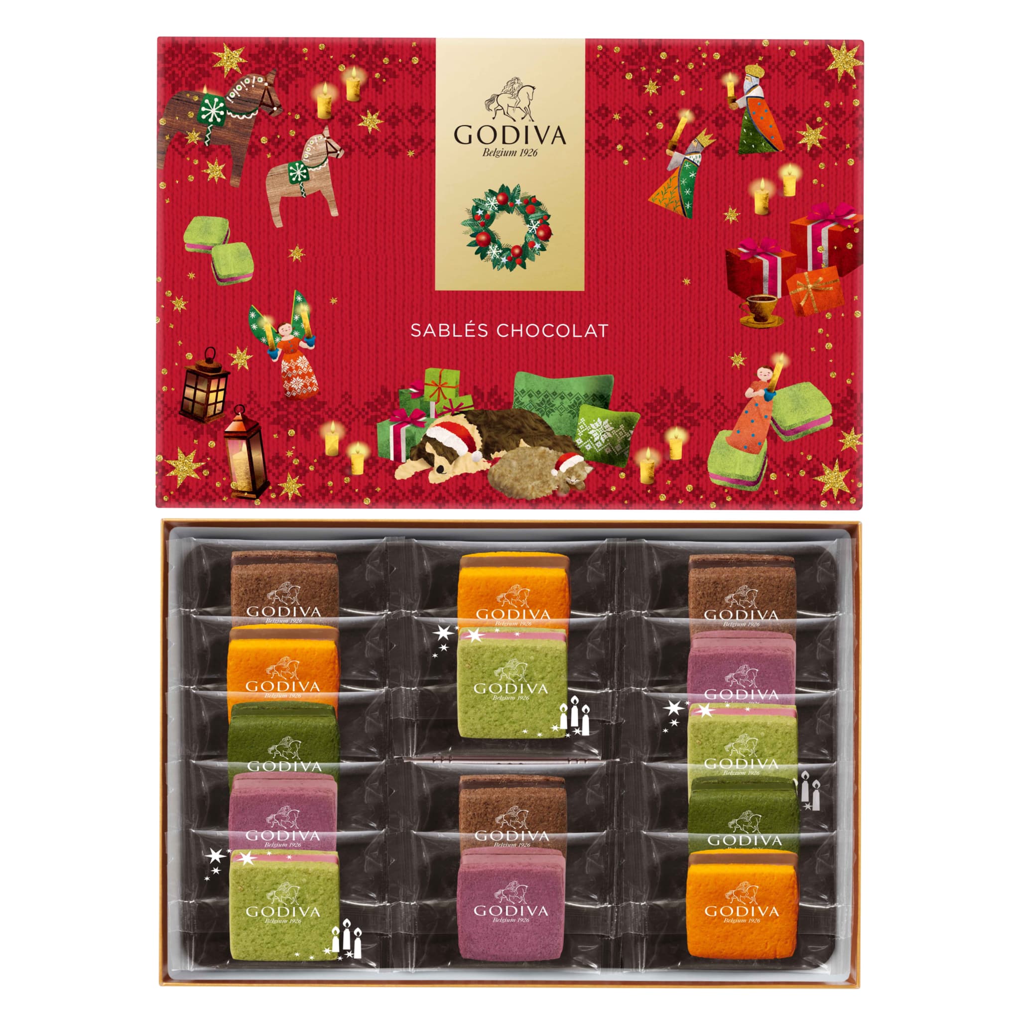 Holiday限定の「ピスタチオ&ラズベリー」と定番サブレショコラ4種を期間限定のパッケージに詰め合わせました。