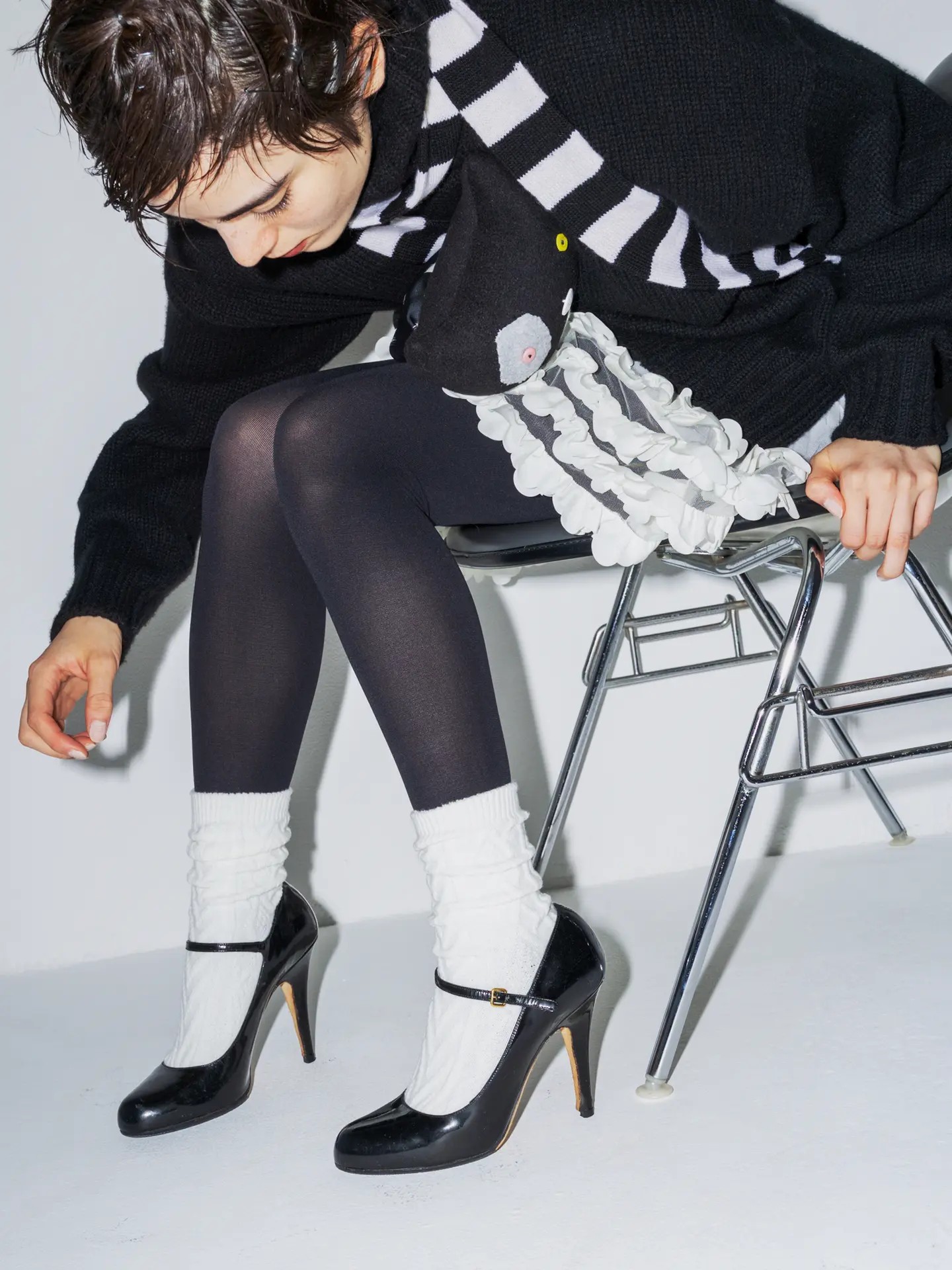 ふっくらとしたアクリル毛混素材であたたかい冬にぴったりの一足です。