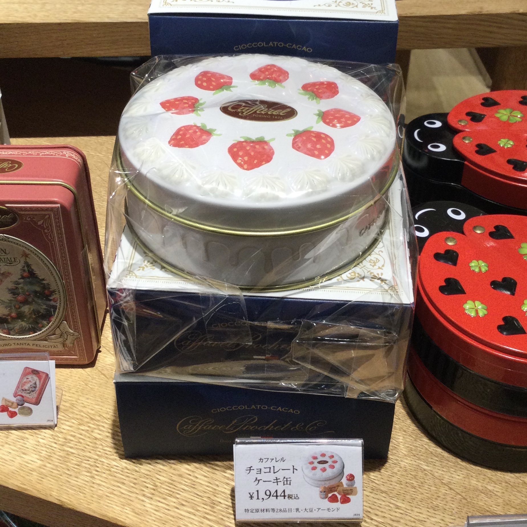 カファレルの人気商品です。テイクアウトケースにショートケーキ型の缶に入ったチョコレート入りでつい手に取りたくなる可愛さです。
