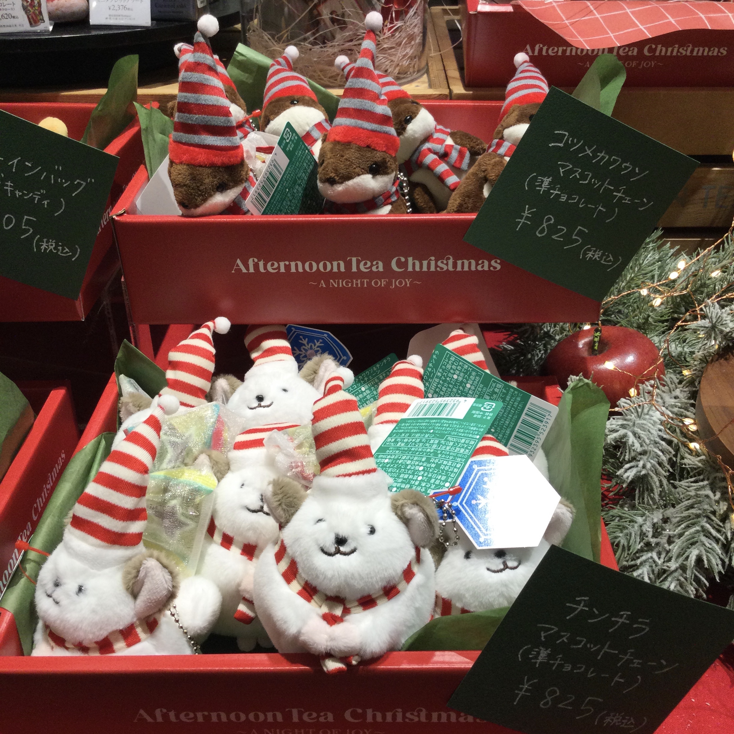 コツメカワウソとチンチラがXmasの装いをしたマスコットチェーンです。お菓子袋を背をっているのがたまりません。チョコレートが入ってます。