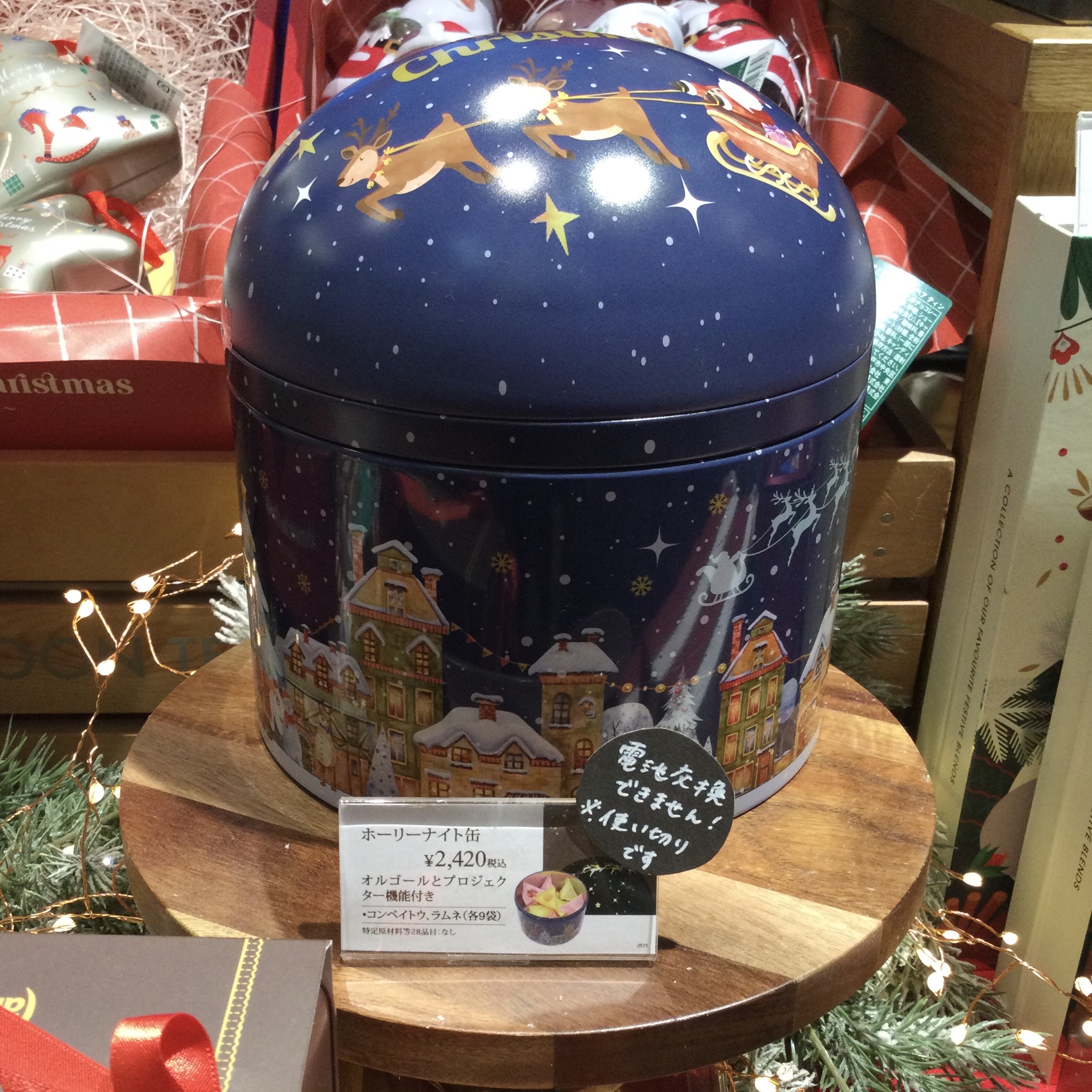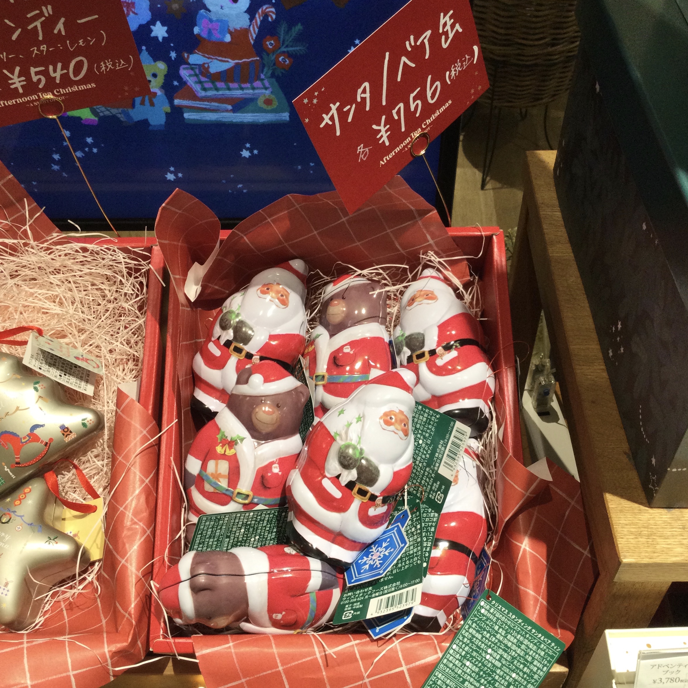 サンタとクマの立体的な缶です。細かいところまでしっかりデザインされており後ろ姿もかわいらしいです。