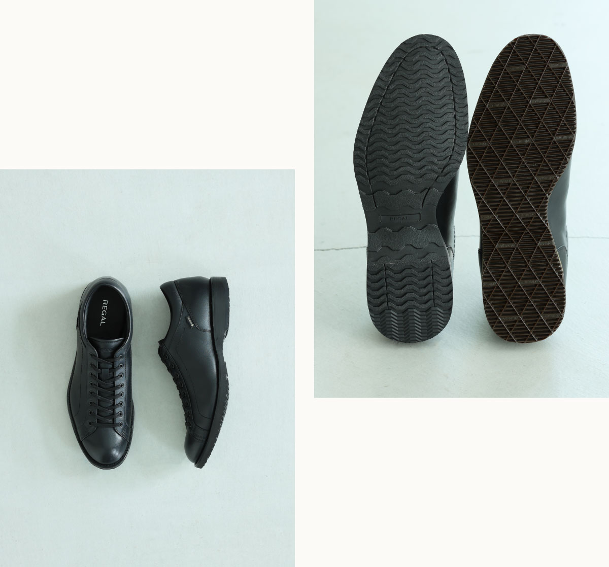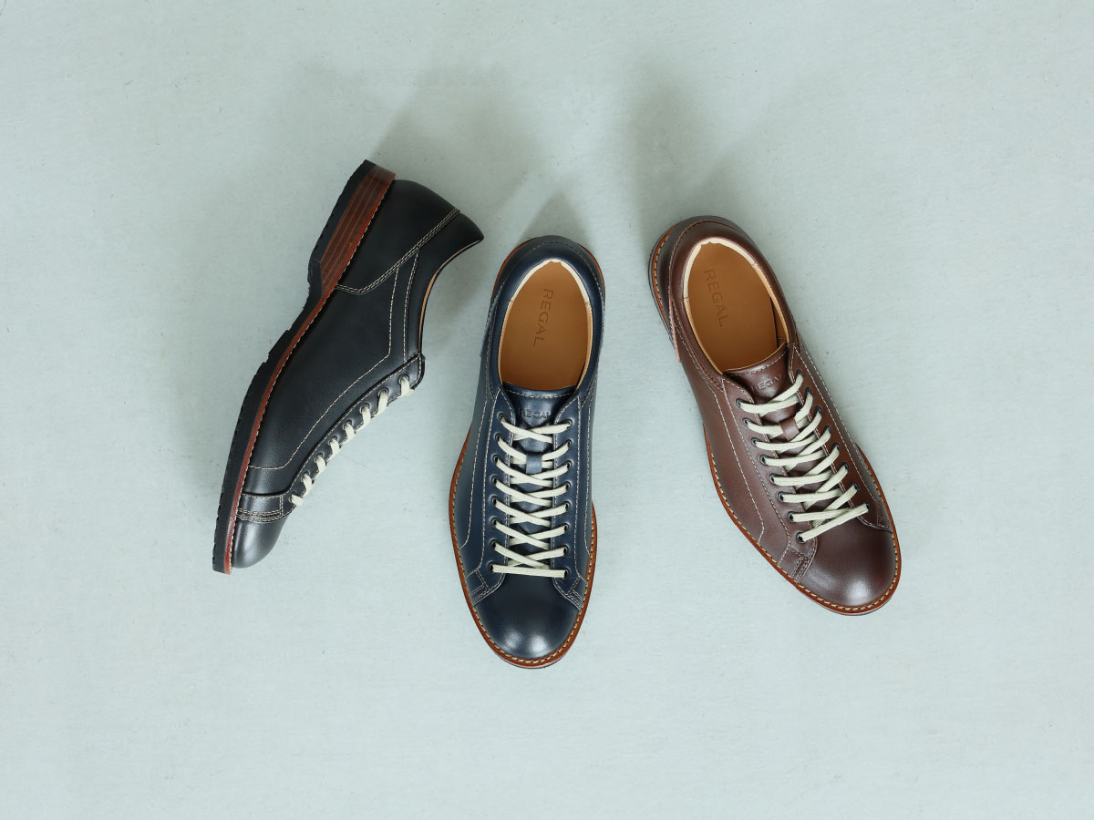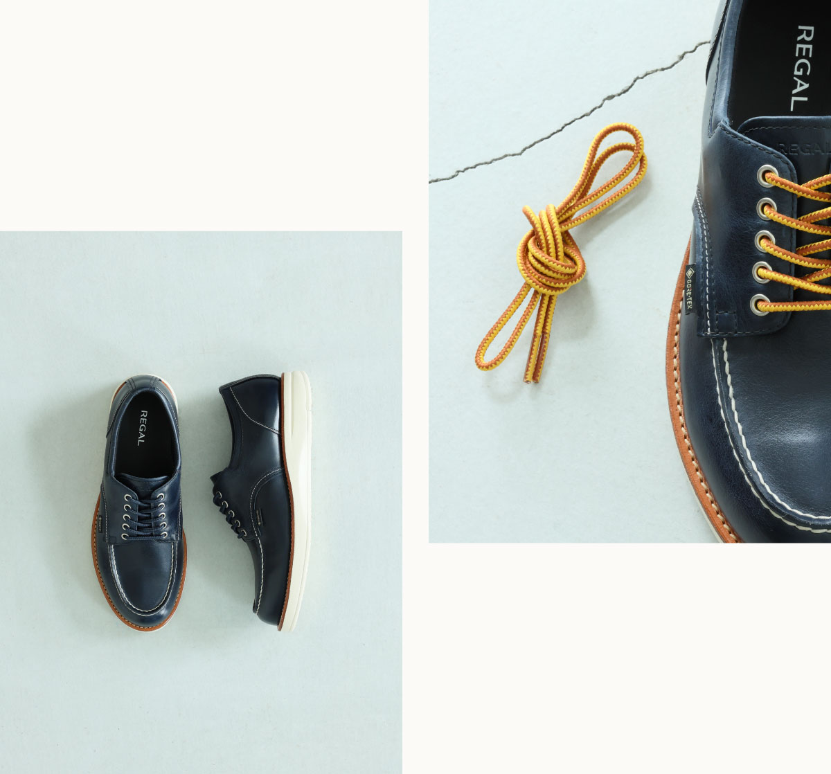 ワークブーツの無骨な雰囲気を残したローカットのモックトウは、タウンユースに最適なすっきりとした表情に仕上げています。自然な艶を生むオイルドレザーや押し縁と呼ばれるテープ状の革は、ワークテイストを上品に格上げするREGALならではの素材選び。