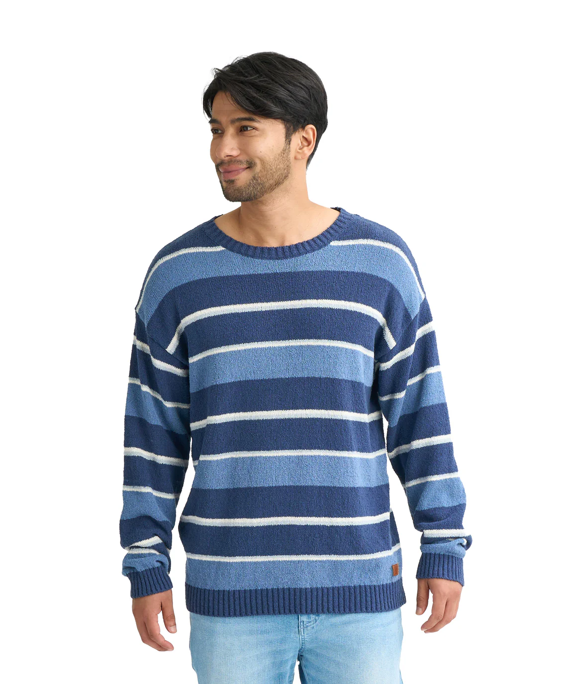 洗い感のある先染めボーダーのコットンニットセーター。左裾にGARAGEコレクションラベルを施しました。一枚での着用はもちろん、アウターをレイヤードすればロングシーズン活躍します。