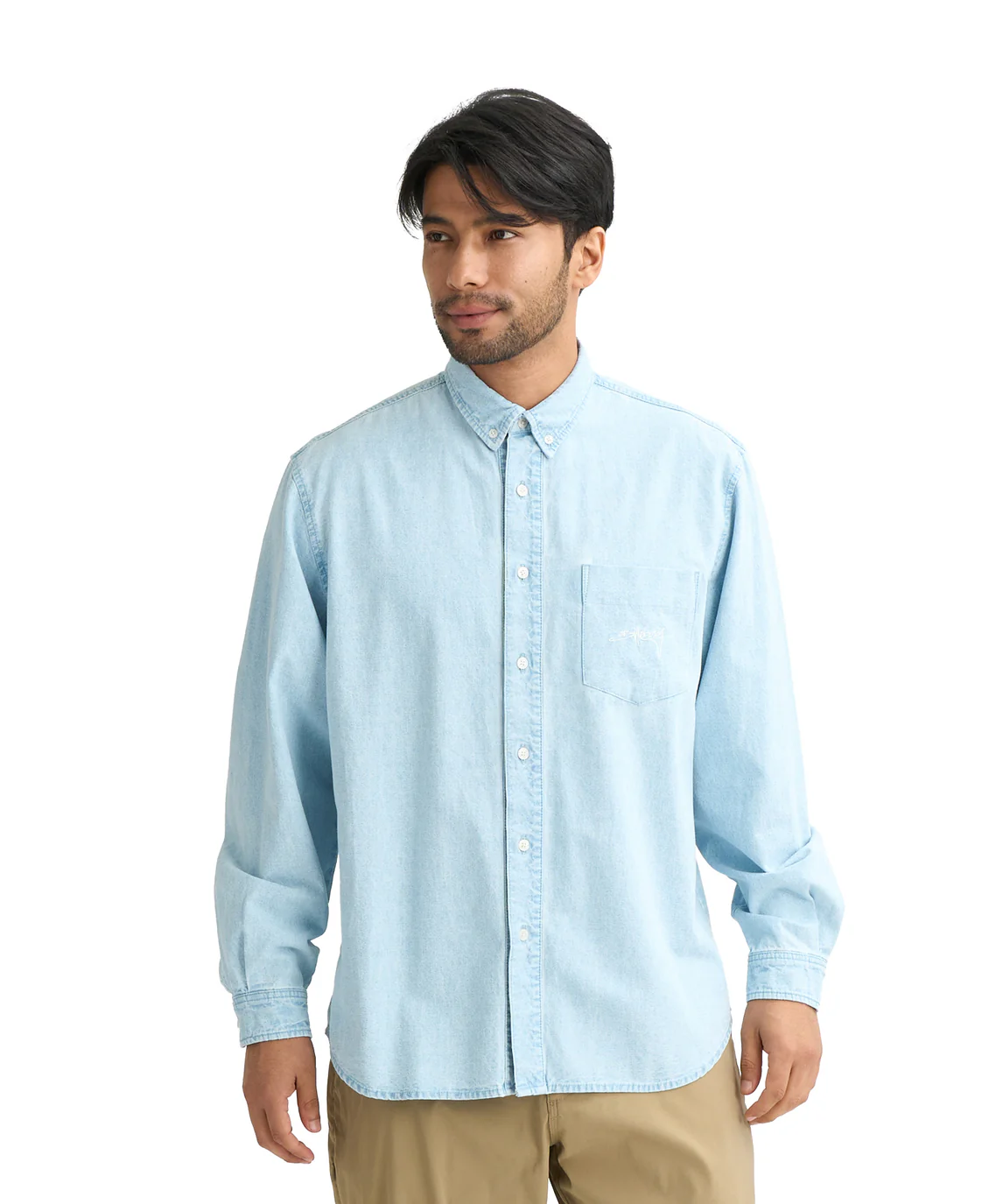 シャンブレー生地を使用し、シンプルながらも存在感があり、一枚持っていると幅広いコーディネートで活躍するアイテムです。