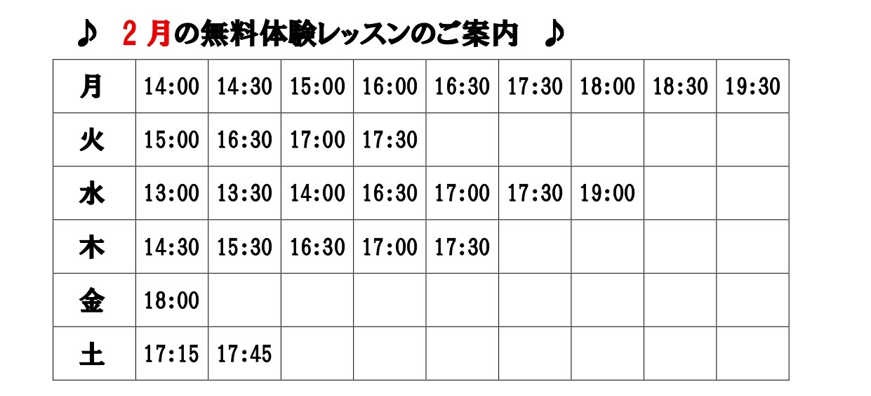 曜日によって講師が変わりますので、お通いやすい曜日、時間での体験をおすすめしております。