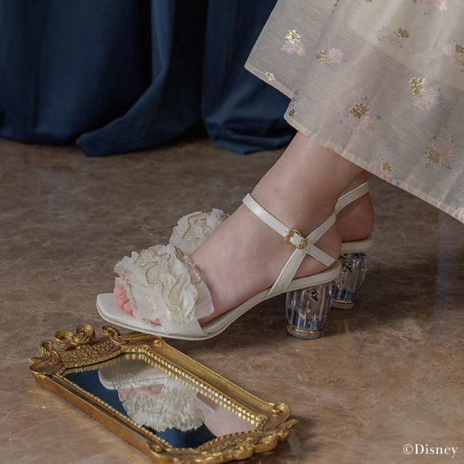 ディズニー・アニメーション映画『美女と野獣』のダンスシーンから着想を得た特別なデザインのヒールサンダル。