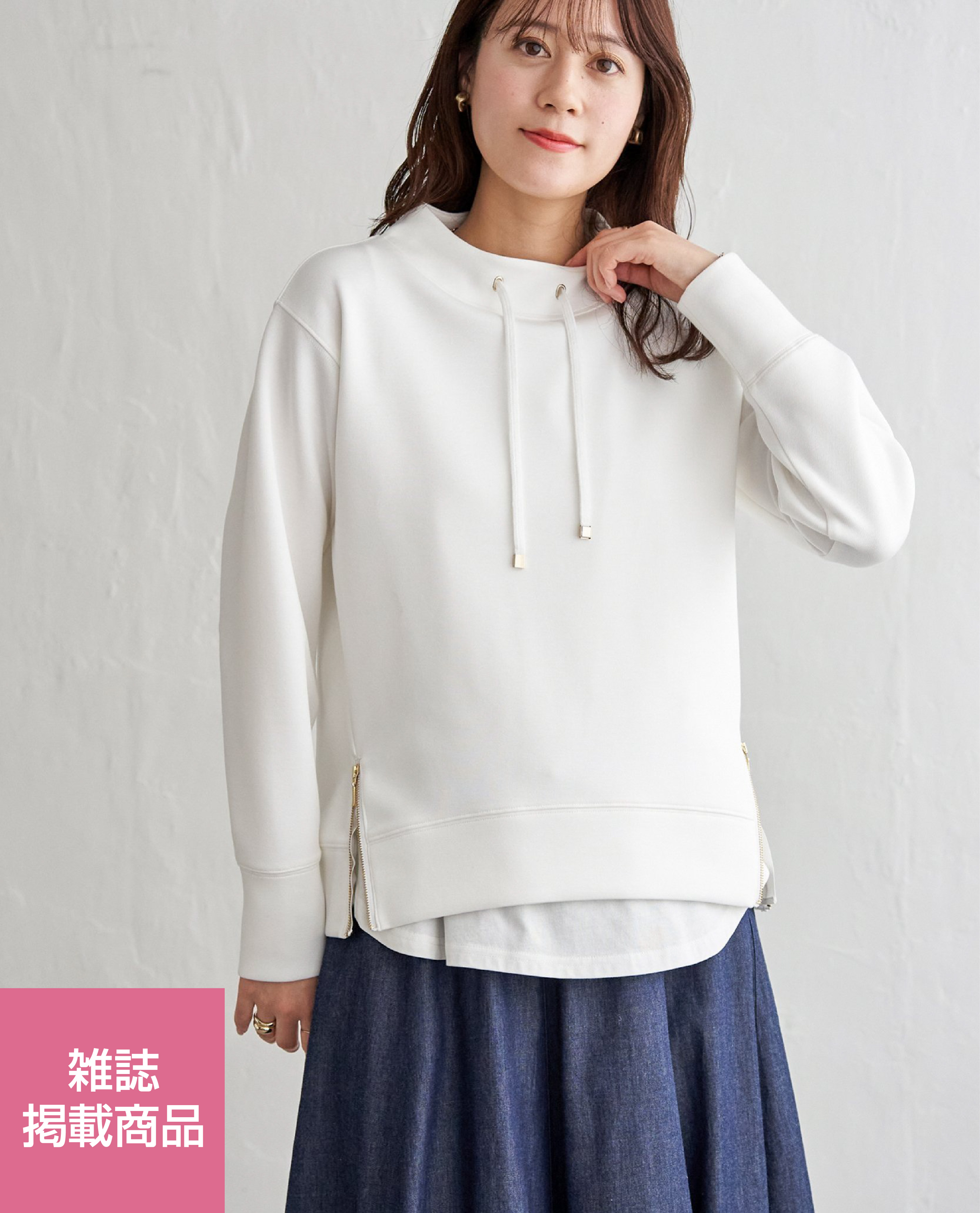 ・首元にきれいに沿ったモックネックはカジュアル過ぎず大人な雰囲気の抜け感を演出