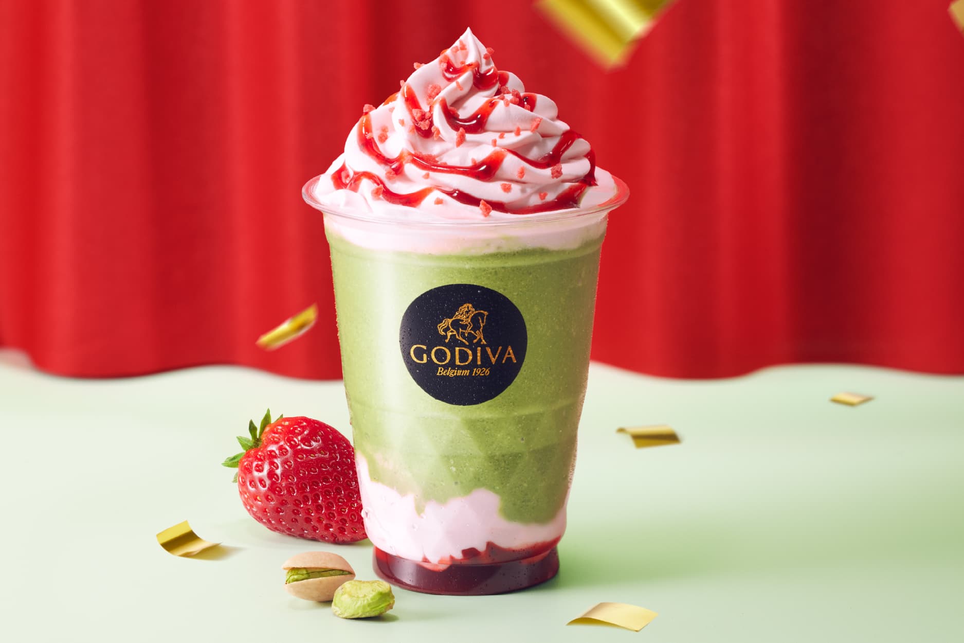 ゴディバ100周年を記念して、フランスの名匠とともに生み出した特別なショコリキサー。甘酸っぱいストロベリーの華やかさに、ピスタチオの香ばしさが溶け合い、豊かな余韻を奏でます。ホイップクリームには米糀ミルクを加え、軽やかで洗練された口あたりに仕上げました。