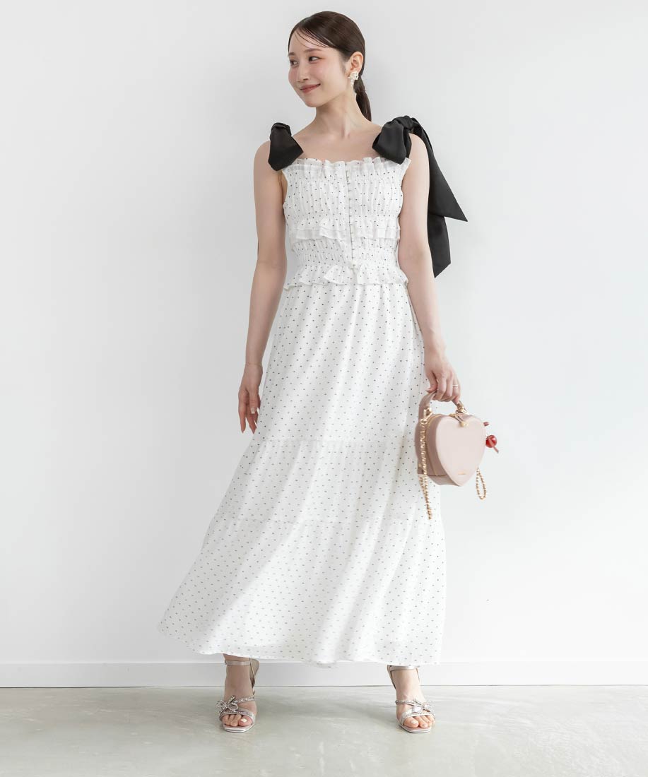 ・大胆なショルダーリボンがスタイリングのアクセントに