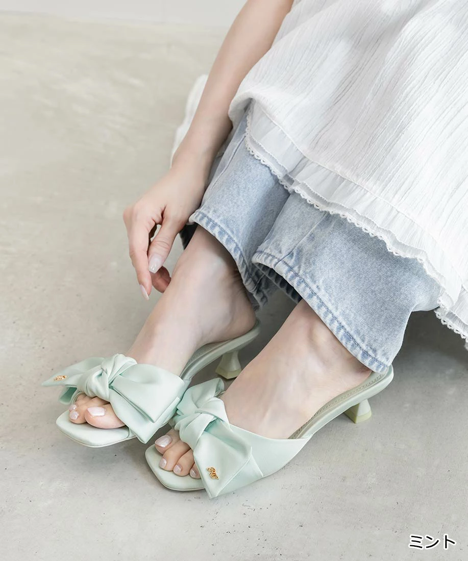 リボンデザインスクエアトゥミュールサンダル/DS37284/R2