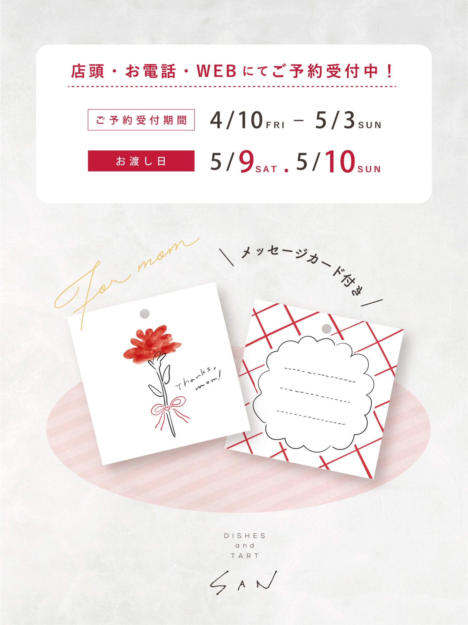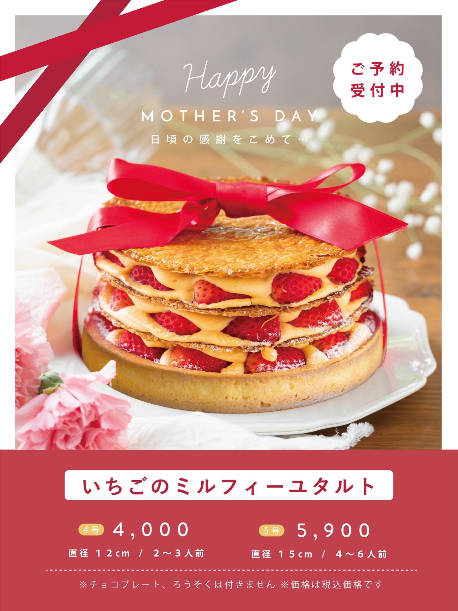 毎年ご好評いただいている、SANの母の日限定ケーキ。