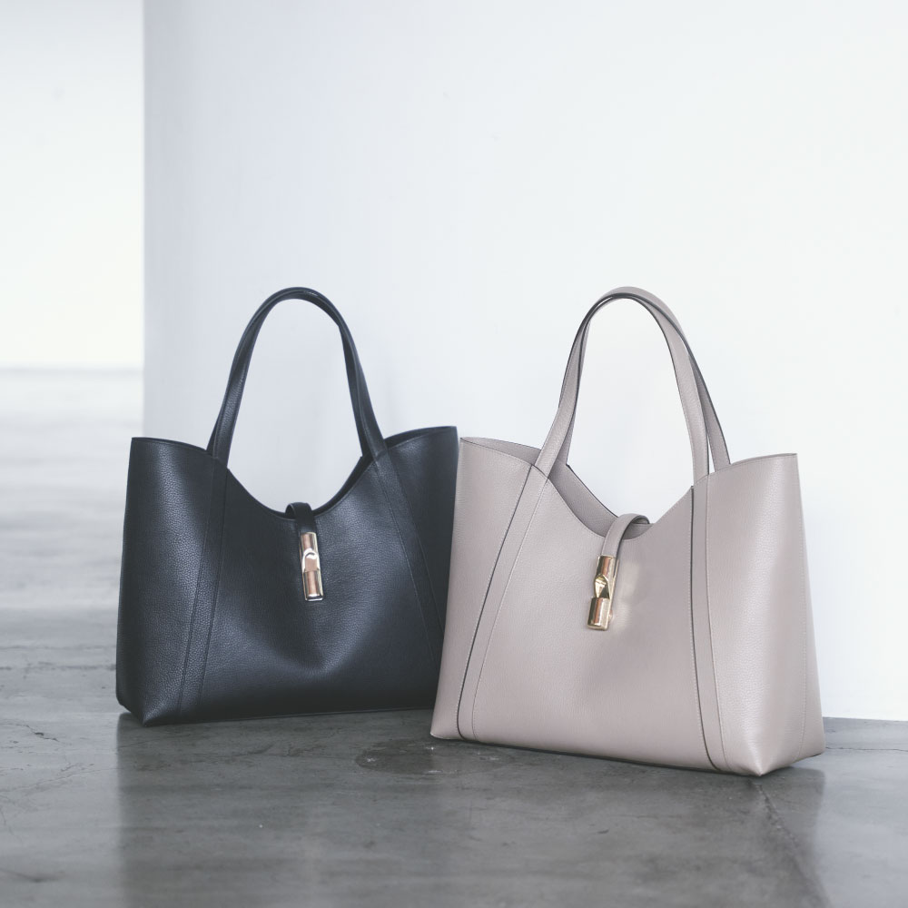 見た目の美しさだけでなく、ノートパソコンがさっと入る実用性の高い収納力も魅力。荷物が多い日にもちょうどいい、仕事でもプライベートでもシーンレスに活躍する頼もしいアイテムです。